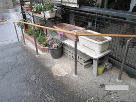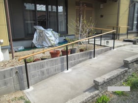 奥様の足腰が弱ってきて、玄関先のスロープに手摺を付けたい。