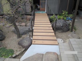 和風の庭園に似合う様に木製スロープを、お施主様が希望されましたので