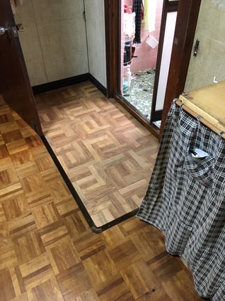 LDKの床で浴室入口付近の床がペコペコになってきたので