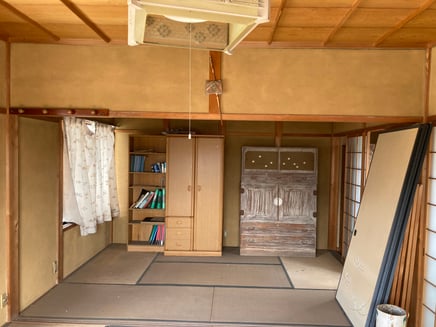 畳をフローリングに替え、天井は下地処理をしクロスで施工、襖は引戸に取替え、壁は補修をし塗壁で仕上げ、照明も新しく取替えさせていただきました。