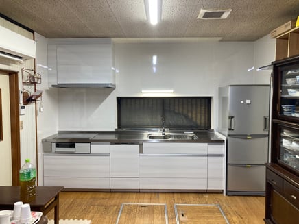 以前は上部に収納があり、わざわざ台を使用して取らないといけない状態で危なかったので工事を機にスッキリと空間をあけました。圧迫感もなくなり、作業台が少し広くなったので下ごしらえなどがラクにできて、料理をするのが楽しみになりました。収納に関しては元々あまり使用してなかった物を断捨離しつつ、必要な物は十分しまえる容量だったので大変満足しています。